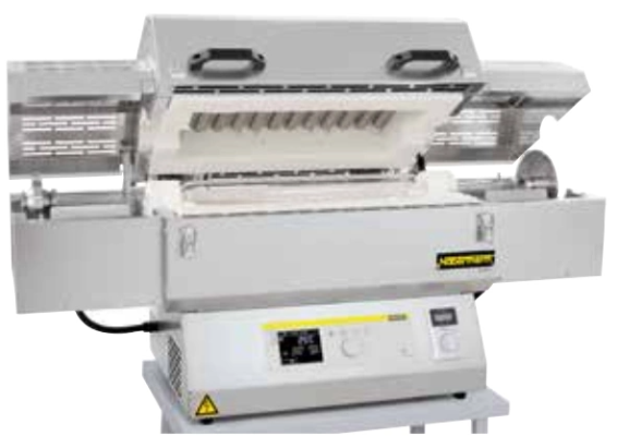 - Lò nung ống quay của dòng RSRB thích hợp cho hoạt động hàng loạt. Sự quay của ống làm việc đảm bảo rằng điện tích là chuyển động. Do hình dạng của lò phản ứng thạch anh với đầu ống côn, mẻ được giữ trong lò ống quay và có thể được xử lý nhiệt trong một khoảng thời gian dài tùy ý. Hệ thống gia nhiệt có kiểm soát đến các cấu hình nhiệt độ cũng có thể
