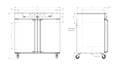 - Kích thước: w (D) x h (E) x d (F): 1224 x 1247 x 784 mm (tay nắm cửa d + 56mm)