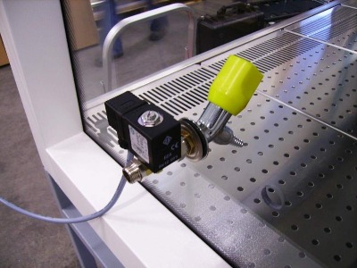 - Không khí xung quanh được hút vào từ các khe ở đếbằng thép không gỉ của cửa trước và sau đó đi qua dưới bề mặt làm việc, từ đó nó được hút lên và thổi vào khoang của quạt thông gió và tuần hoàn.