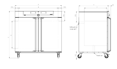 - Kích thước: w (D) x h (E) x d (F): 1224 x 1720 x 784 mm (tay nắm cửa d + 56mm)