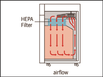 Độ sạch của loại 100 đạt được nhờ bộ lọc HEPA.